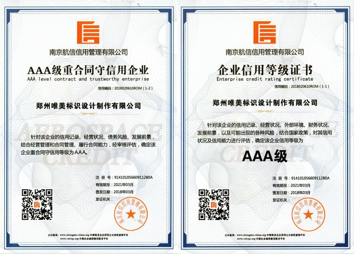 专业用心,客户第一,唯美人始终坚持:“客户至上、诚实可信”的服务理念,累计服务标识项目2600多个,成为世界500强企业指定合作伙伴。为恒大地产、万科地产、碧桂园地产、建业地产、正商地产、永威地产、瀚海地产、国家电网、中国烟草、中国人民银行、工商银行、五洲国际、欧凯龙、居然之家、外国语学校、河南省儿童医院等客户提供了优质的服务,荣获了河南地产商会:“最佳合作伙伴”,河南标识行业协会“诚信企业”等荣誉称号。
